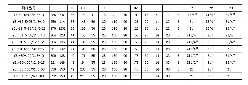 雙聯泵規格表