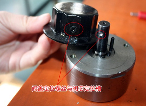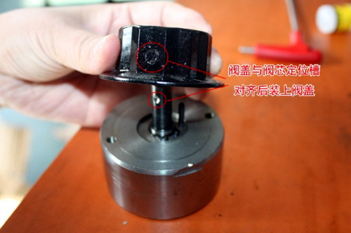b.閥蓋的定位螺絲與閥芯的定位槽對齊后,安裝上